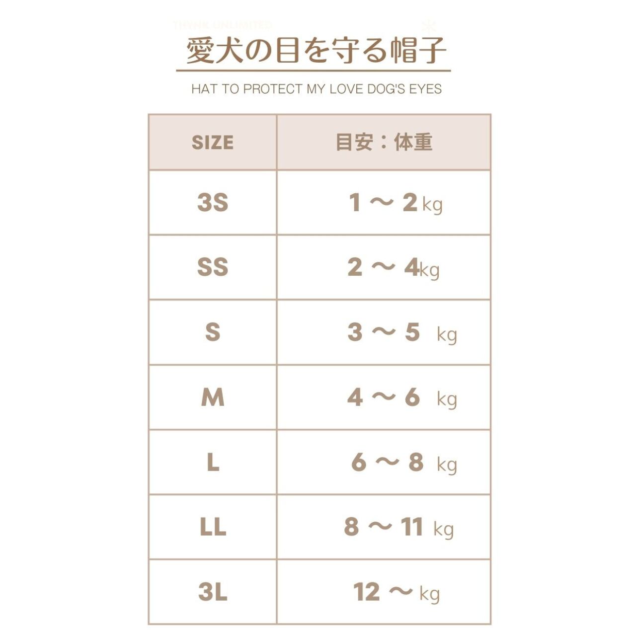 基本サイズを3S~3Lまでご用意。