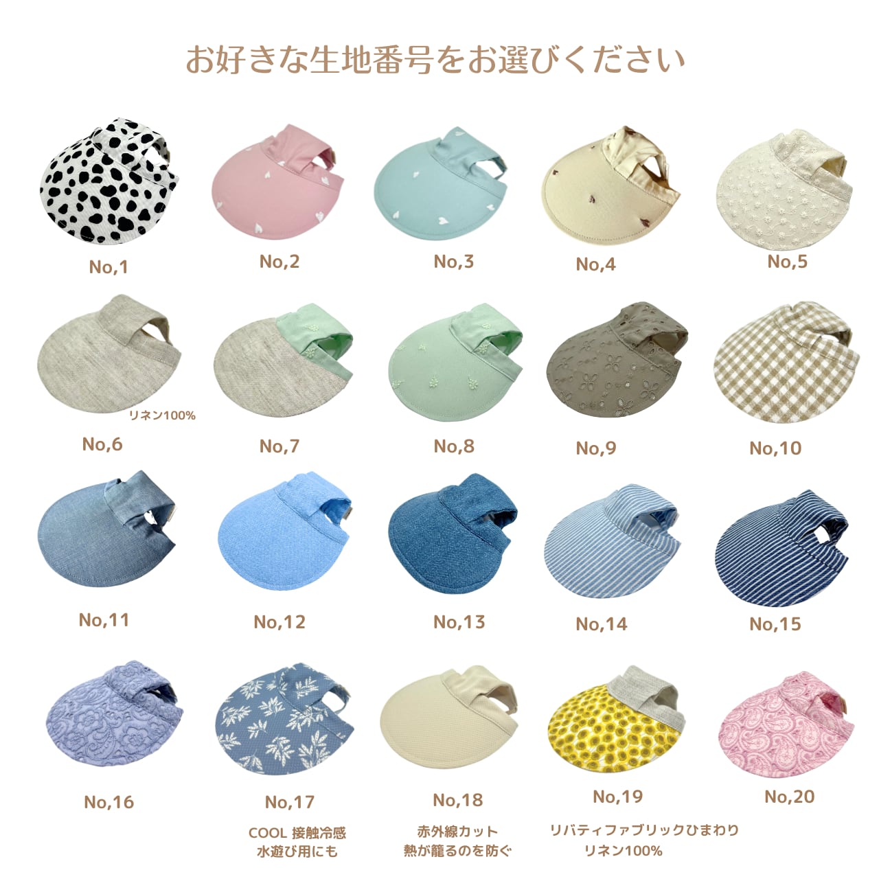 ②お好きな生地1~20からお選びください。